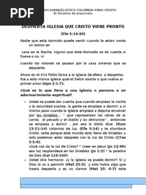 A Juan 141-3 b I Tes. DESPIERTA IGLESIA QUE CRISTO VIENE PRONTO Efe 514-20 Nadie que este dormido puede sentir cuando le estan ronda un ladron en. La Biblia dice que todo aquel que ha aceptado a Cristo que ha nacido de nuevo y viva una vida.